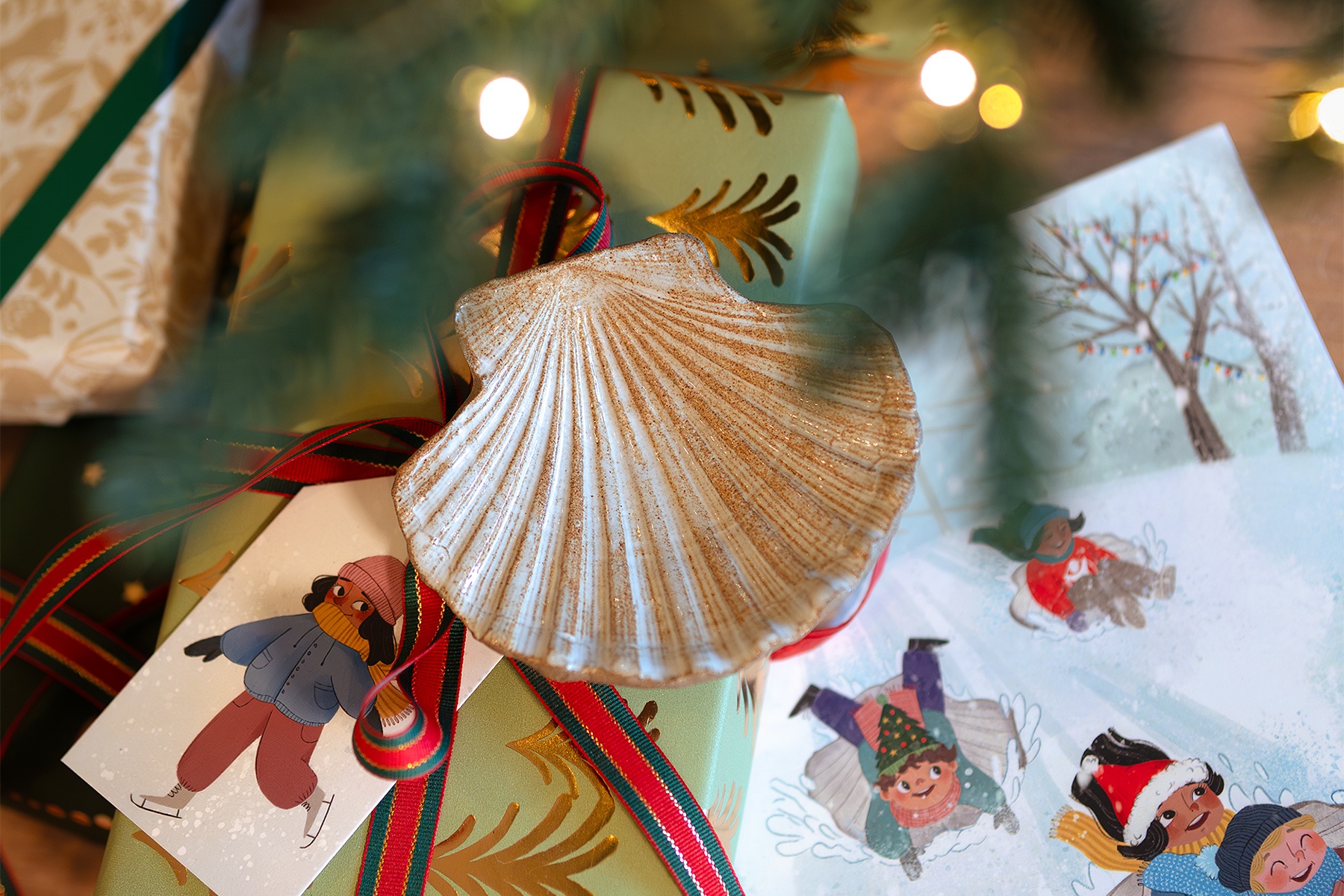 I år har vi haft den stora glädjen att samarbeta med två åländska kreatörer; keramikern Isabelle Törneroos som formgivit årets julgåva – en vacker snäckskål, och illustratören Amanda Valkonen som har illustrerat motivet till årets julgåvokort. Båda kreatörer har arbetat pro bono till förmån för Rädda Barnens barnfond.